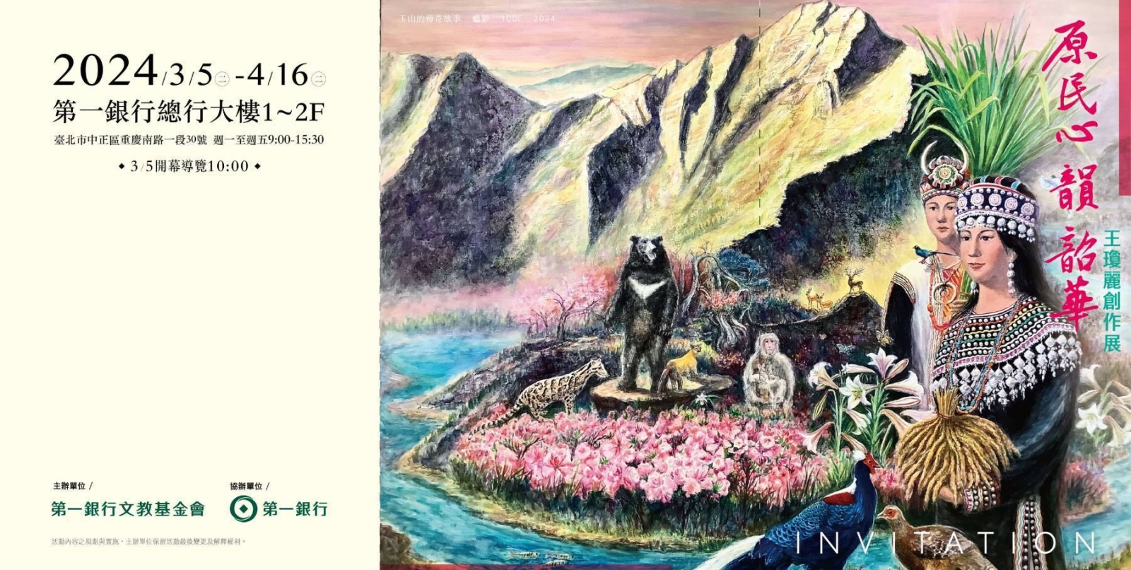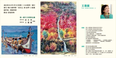 謹訂於2024年3月5日(星期二)10:00假第一銀行總行1樓大廳舉辦「原民心 韻 韶華-王瓊麗創作展」開展典禮